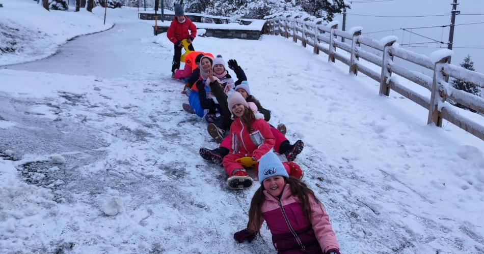Während die einen mit ihren Rutschplatteln lachend den Hügel hinuntersausten, waren andere eifrig...