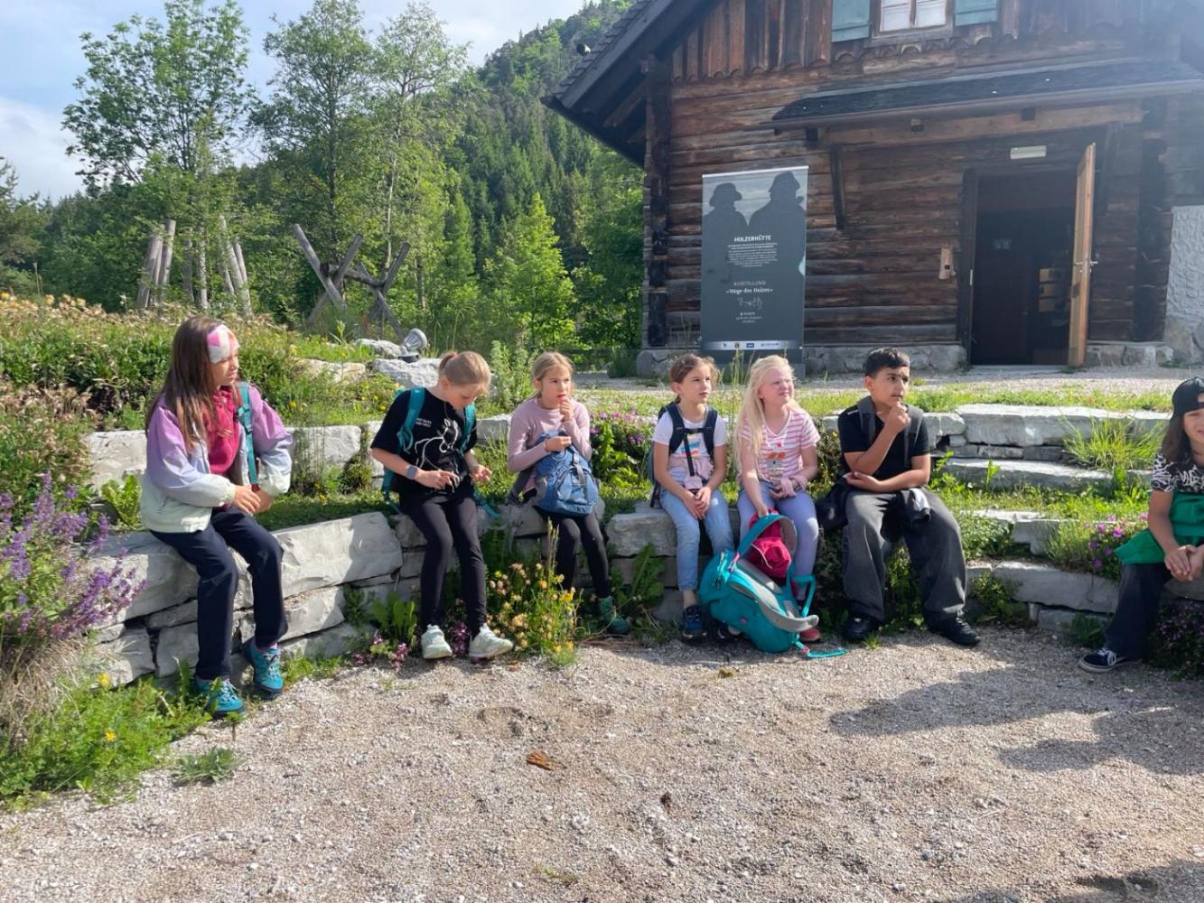 Die dritte Schulstufe unternahm einen spannenden Ausflug in den Naturpark Karwendel nach Scharnitz. Gemeinsam mit den Naturparkführern Felix und Manuel wanderten die Kinder zur Holzner Hütte. Dort erfuhren sie viel über die Geschichte der Holzarbeit in der Region, die Vielfalt des Waldes und seine tierischen Mitbewohner.