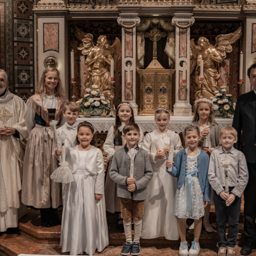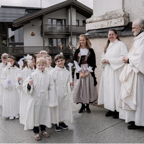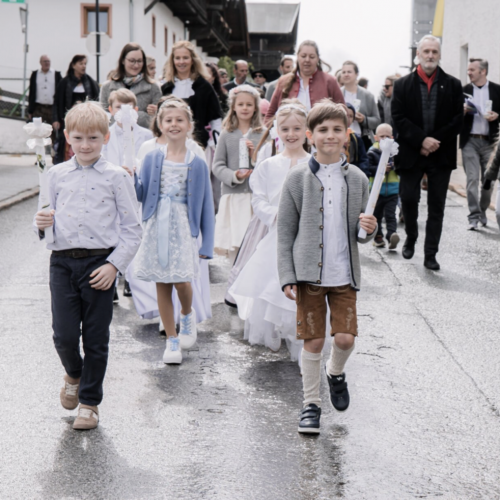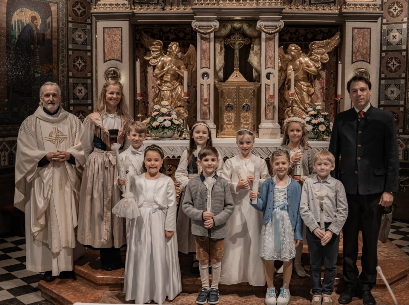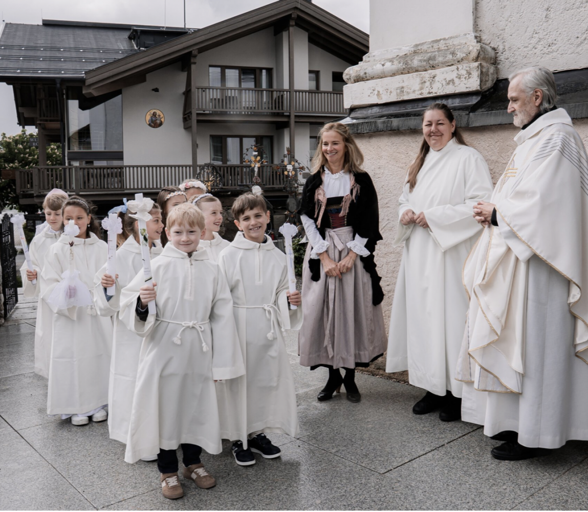 Der Gottesdienst wurde von Pfarrer Herbert zelebriert und stand ganz im Zeichen der Gemeinschaft und des Glaubens. Im Anschluss an die Messe genossen die Familien dann den Sonnenschein und feierten bei der Agape am Dorfplatz gemeinsam ein festliches Beisammensein.