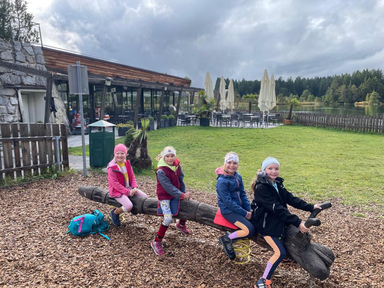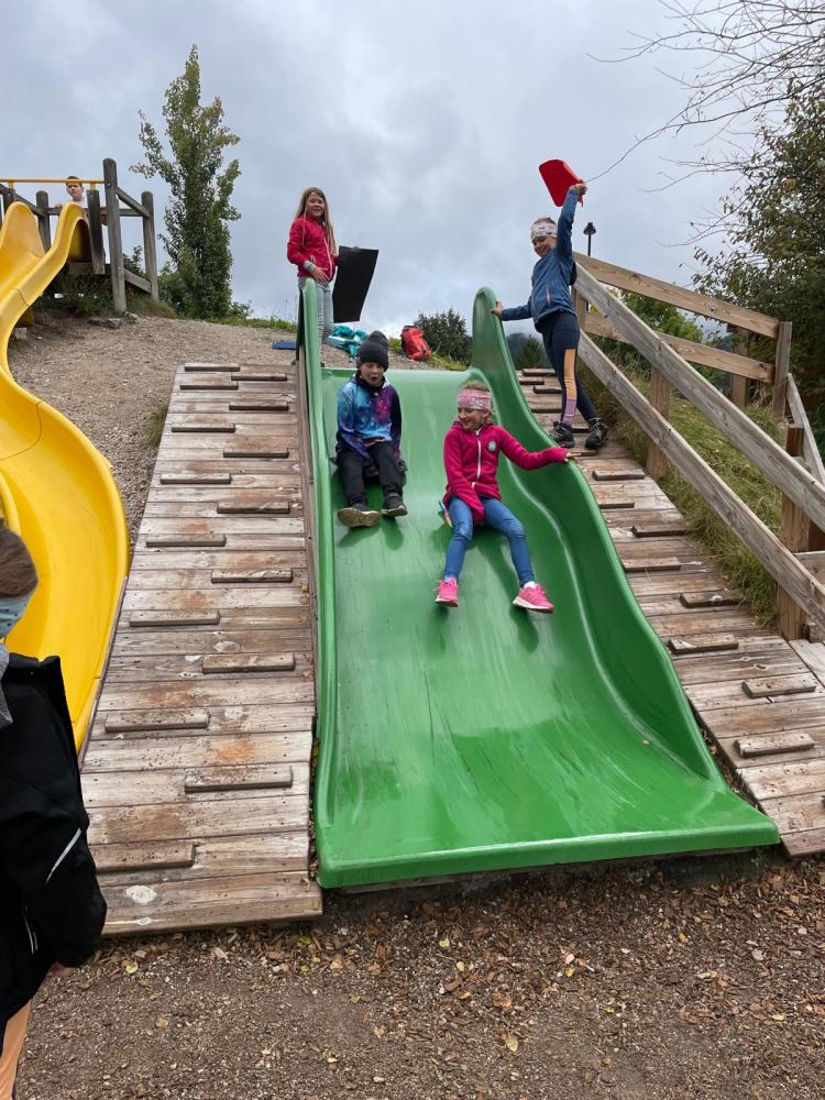 Gemeinsam wanderte die 3.Klasse zum Spielplatz bei der Strandperle in Seefeld. Trotz des schlechten Wetters hatte die Kinder viel Spaß. Auf dem Weg dorthin konnten sie ihre selbstgepflanzten Bäume bewundern und schauen, wie groß sie inzwischen geworden sind. Am Spielplatz angekommen wurden die Sitzunterlagen umfunktioniert, damit die nasse Rutsche trotzdem genutzt werden kann. Gerade als wir uns auf den Rückweg machten, zeigte sich die Sonne endlich und so konnten wir mit guter Laune, nach einem kurzen Stop bei den Mufflons, nach Hause wandern.