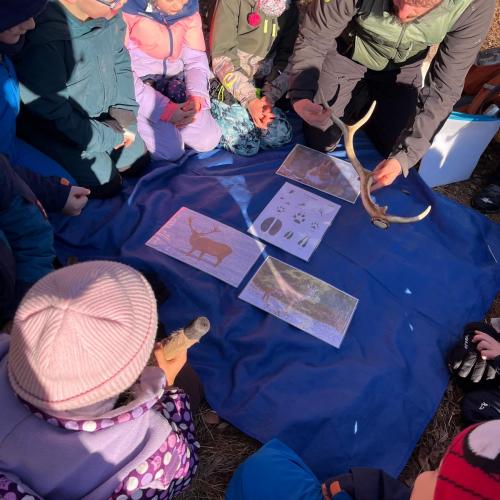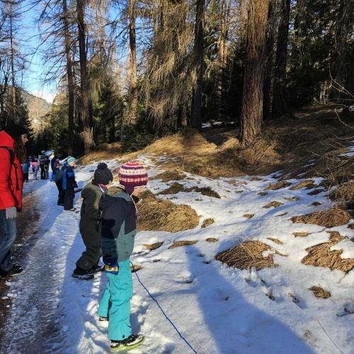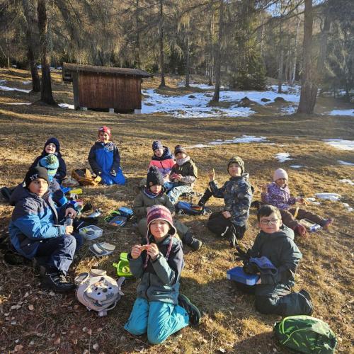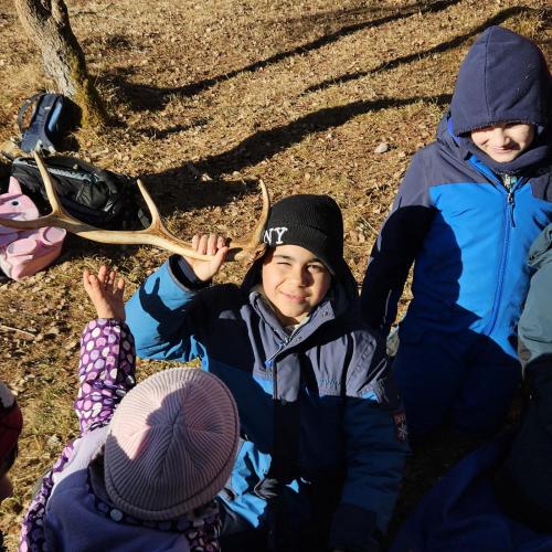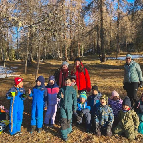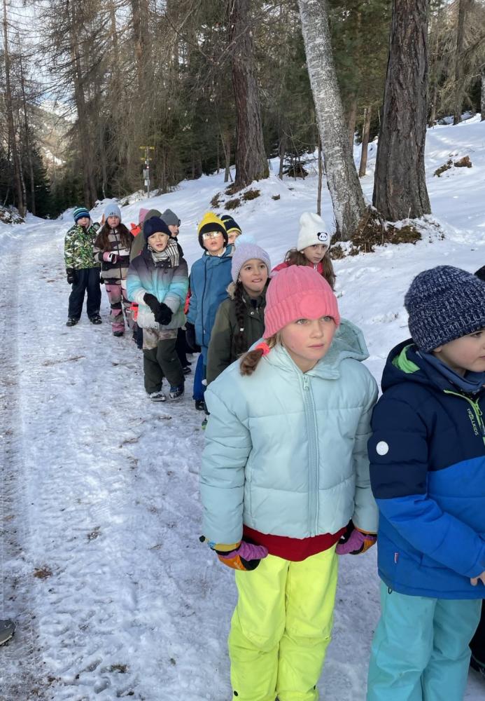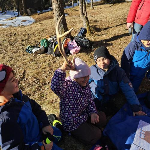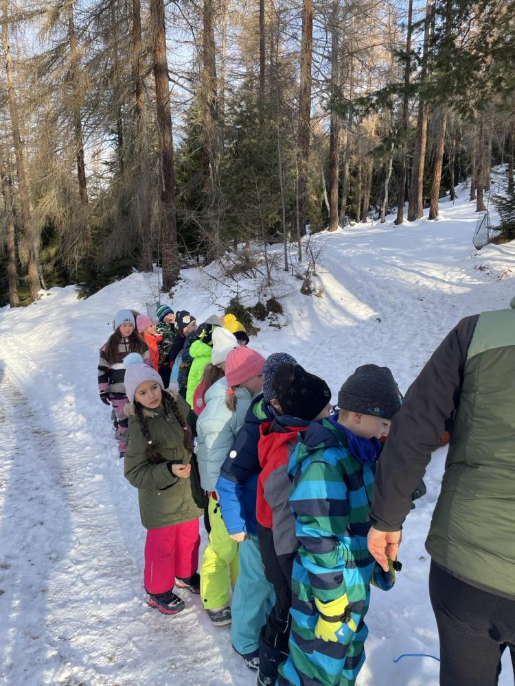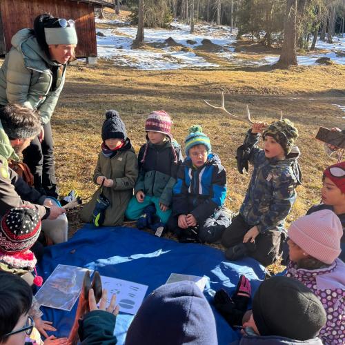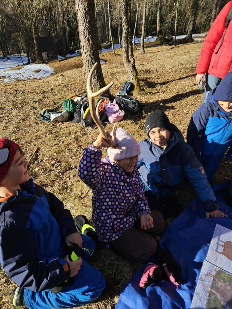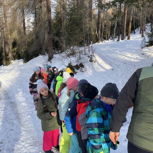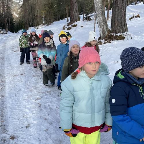Die Kinder der 1. und 2.Klasse haben gemeinsam mit zwei Naturparkführer*innen vom Naturpark Karwendel einen lehrreichen Vormittag im Wald verbracht. Gemeinsam wurden "Spuren im Winter“ gesucht.