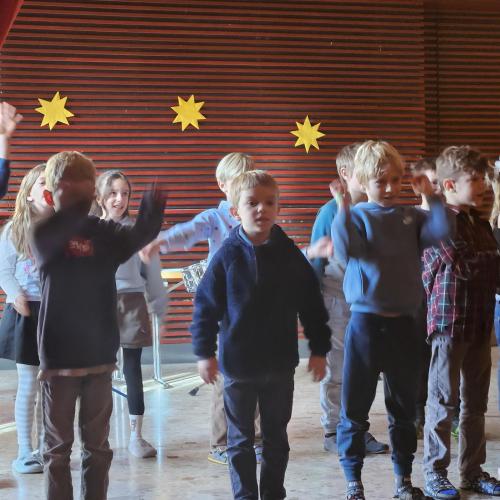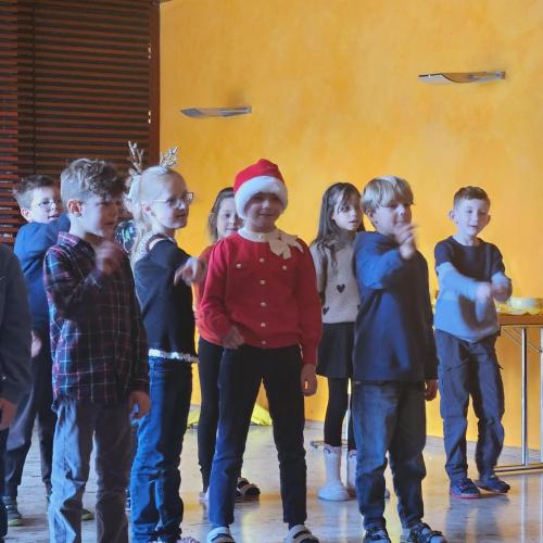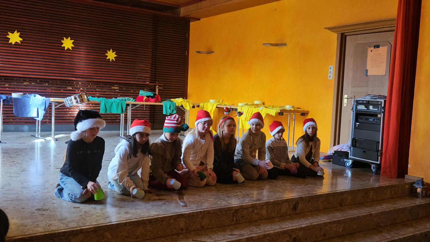 Anschließend wurden Weihnachtswünsche in den verschiedenen Sprachen der Kinder überbracht und das Lied "Ihr Kinderlein kommet" umgedichtet, bevor die 4. Klasse mit ihrem mitreißenden Weihnachts-Cupsong zeigte, was in ihr steckt.