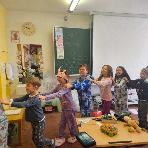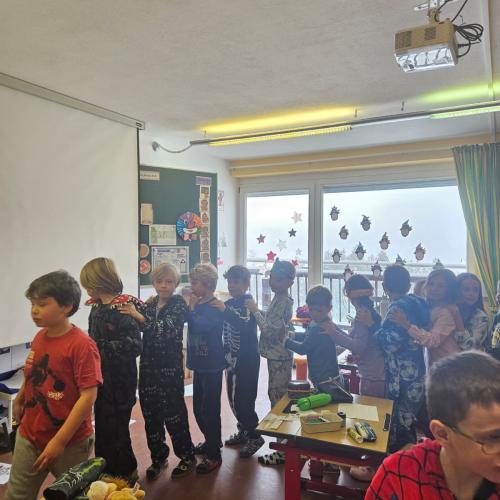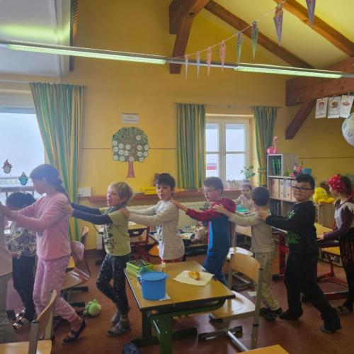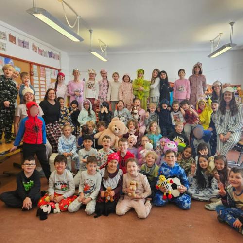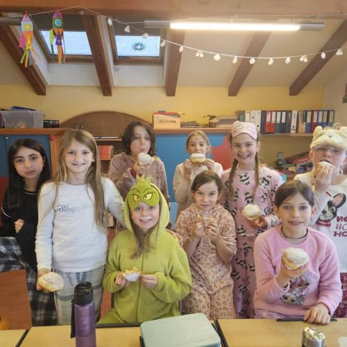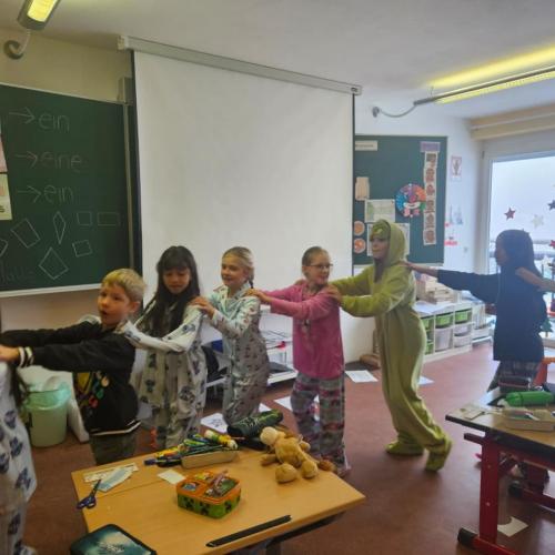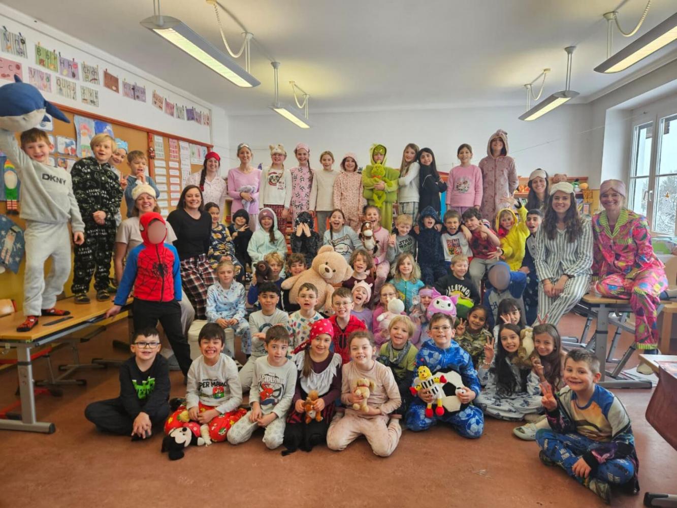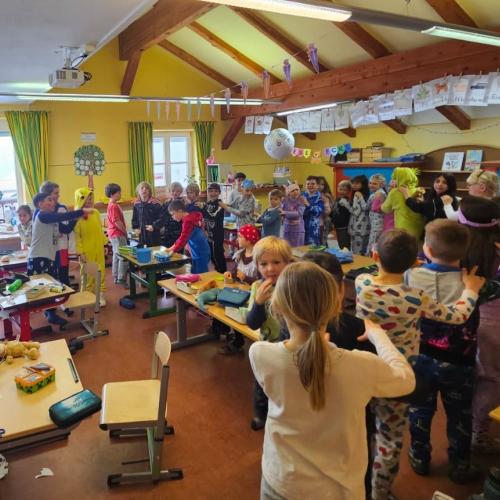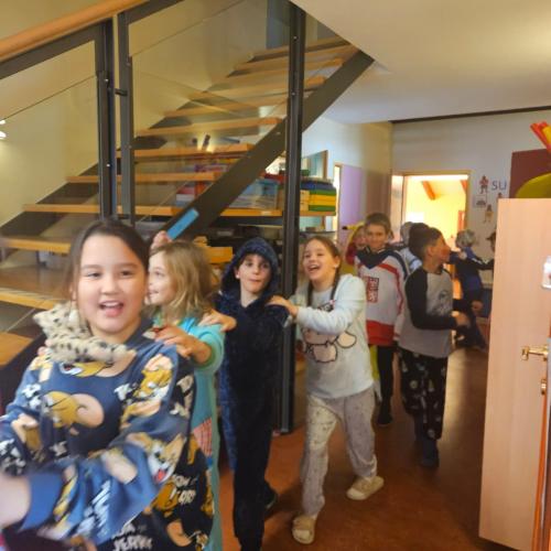 Am Faschingsdienstag wurde es bei uns in der Schule gemütlich, denn die Pyjama-Party des Jahres fand statt. Alle Kinder und auch alle Lehrerinnen kamen im Pyjama und brachten sogar ihre Kuscheltiere mit. Außerdem haben wir gemeinsam leckere Krapfen gegessen, die von der Gemeinde gesponsert wurden. Danach wurden verschiedene Spiele gespielt, viel gelacht und oder einen Film geschaut, um ein richtiges "Zuhause-auf-dem-Sofa-Gefühl" zu schaffen. Zwei Klassen entschieden sich noch dazu, den tollen Schultag zu nutzen und gingen mit den Rutschplattln hinaus in den Schnee. Am Ende waren sich alle einig: So ein gemütlicher Schultag im Pyjama sollte es unbedingt öfter geben!